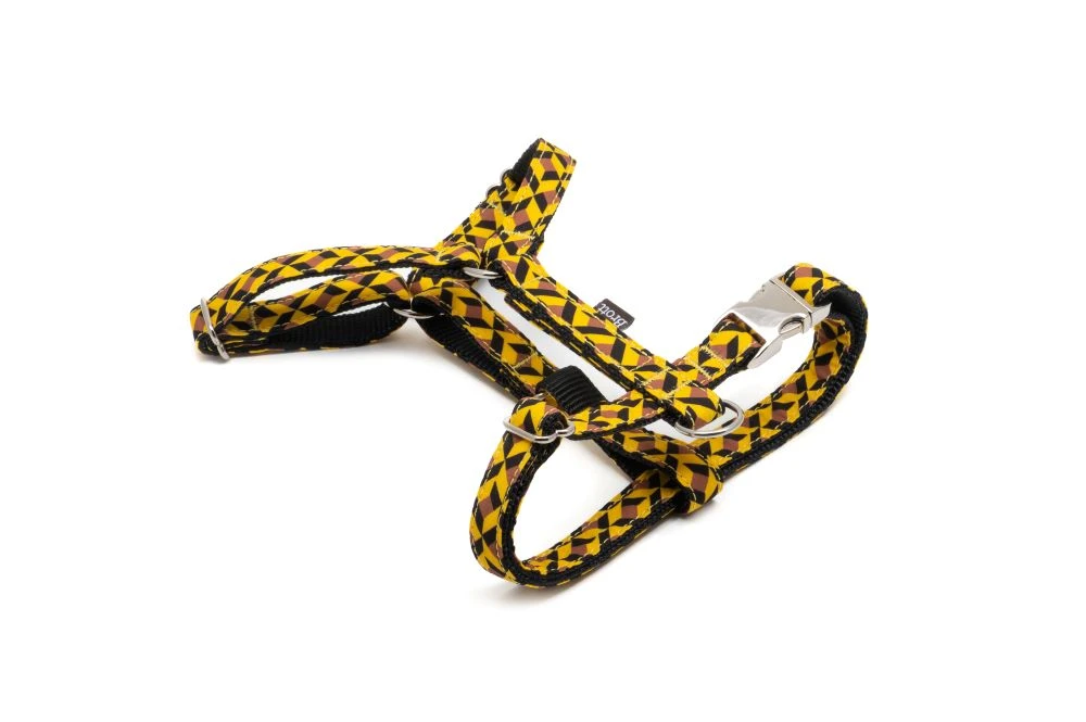 Ce harnais en H est disponible dans plusieurs coloris très tendance comme le Tremp, le fameux tissus écossais, le grand classique.