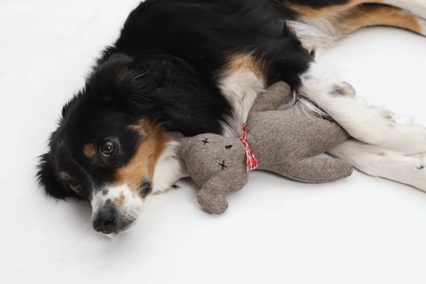 Il est doux, avec des yeux brodés et un petit nez, il est certainement le nouveau compagnon préféré de votre chien.